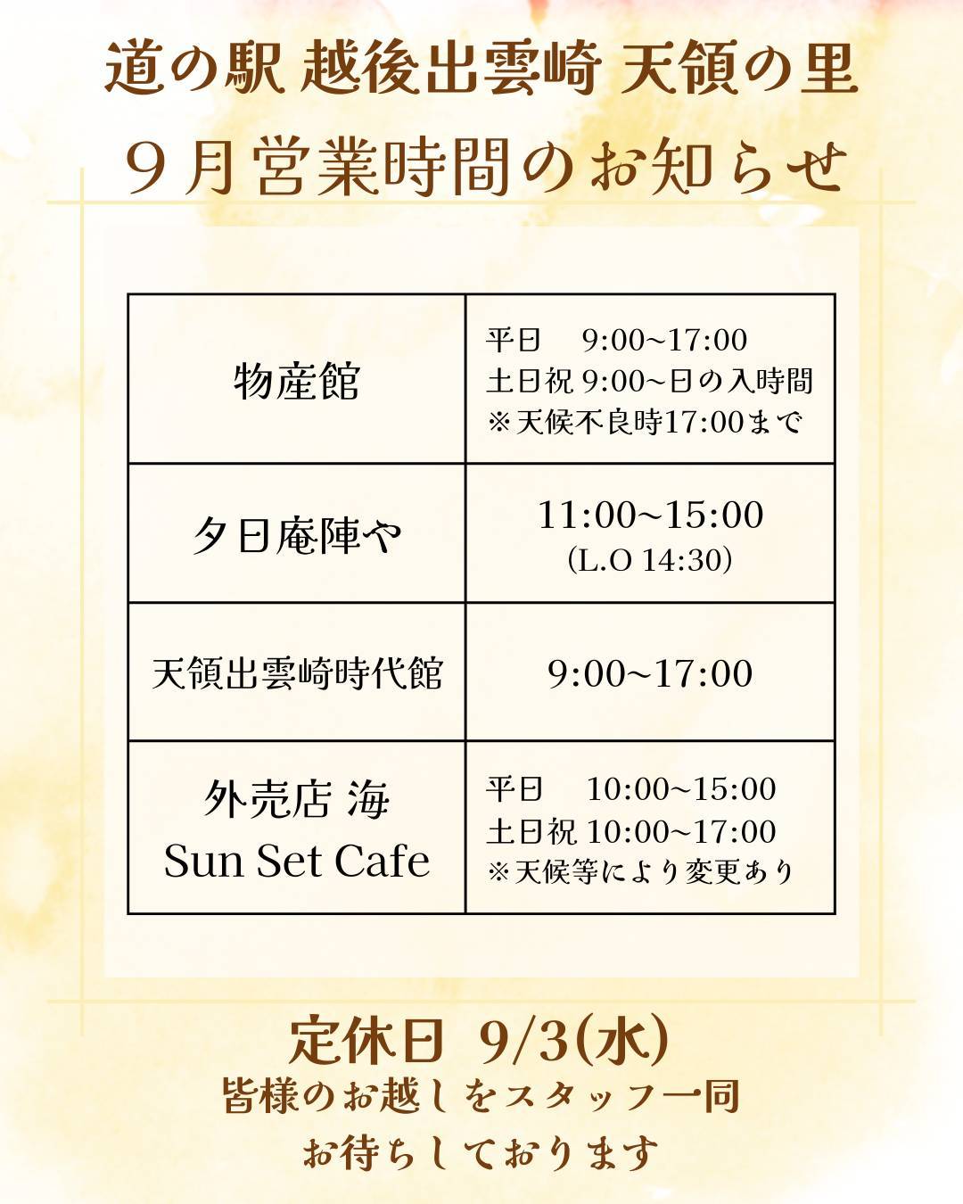 5月~8月・9月(土日祝) | 9:00~日の入時刻 ※天候による |
