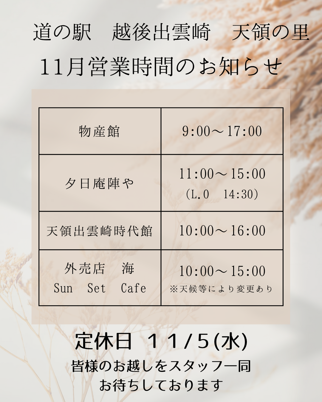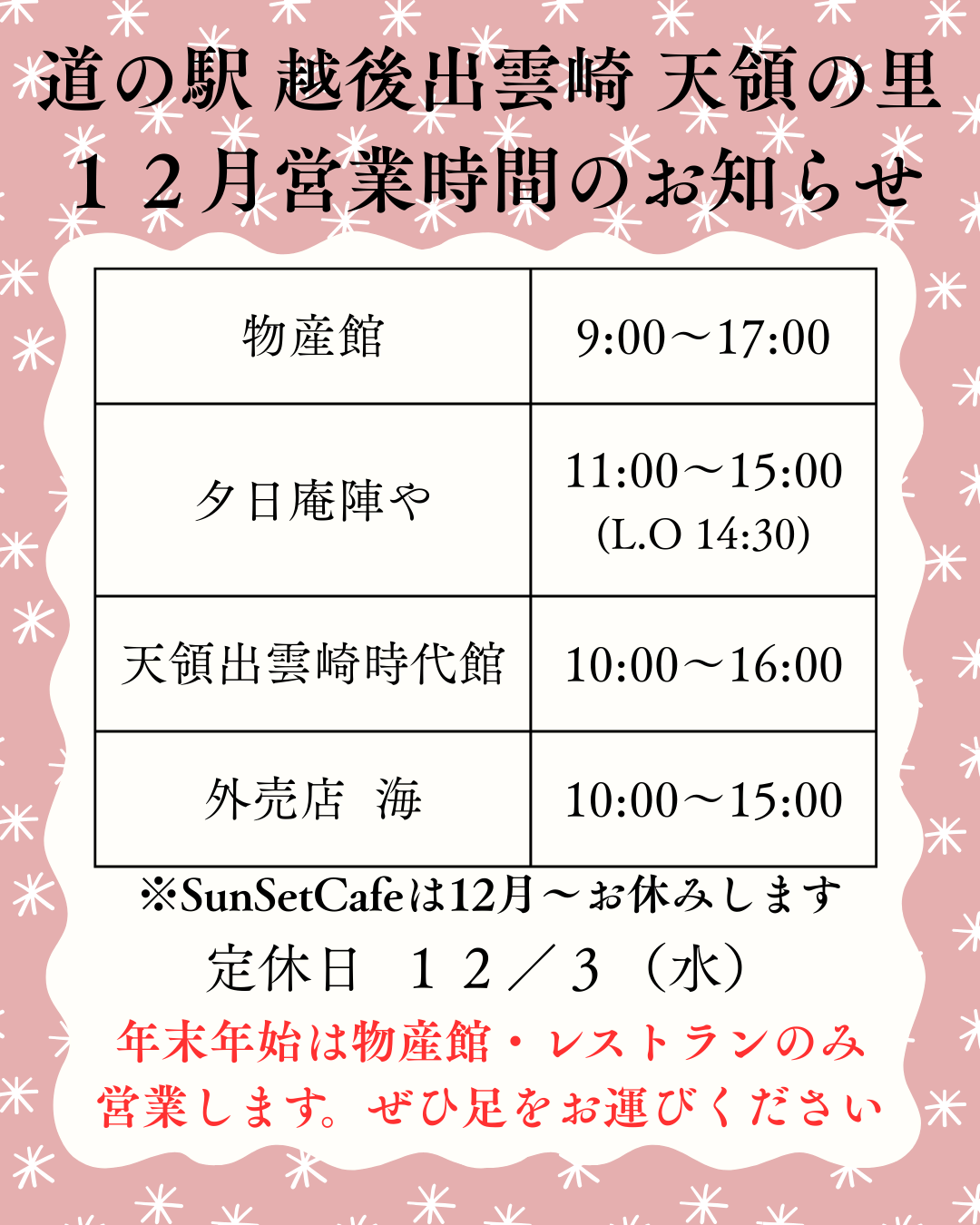 | 11月~3月 | 10:00~16:00 |
