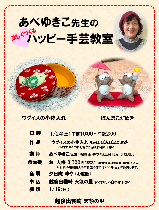 ③1/24(土)あべゆきこ先生のハッピー手芸教室
